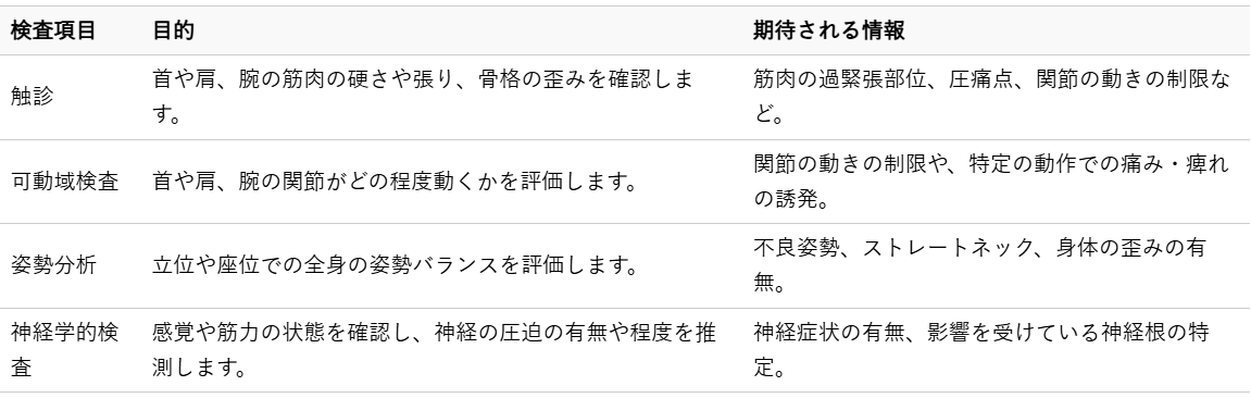 首の痛みや腕の痺れの改善において、まず最も大切なことは症状の根本原因を正確に特定することです。整骨院では、患者様一人ひとりの状態を詳しく把握するために、時間をかけた丁寧な問診と検査を行います。