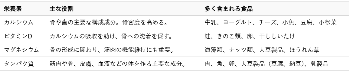 成長期の体は、骨や筋肉が急速に作られます。これらの組織を健康に育てるためには、特定の栄養素が特に重要です。