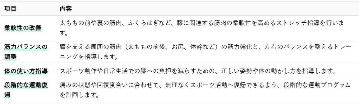 専門家による指導は、単に痛みをなくすだけでなく、再発予防にもつながるため、成長期のお子様が安心してスポーツを続けられるための重要なステップとなります。