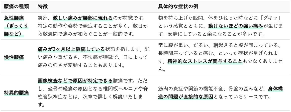 1.1 一般的な腰痛の種類と特徴