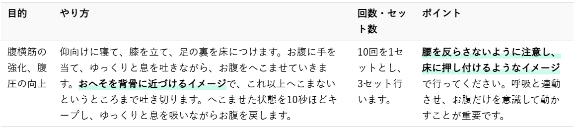 筋トレ中に痛みを感じた場合は、すぐにその運動を中止してください。腰痛改善のための筋トレは、決して痛みを我慢して行うものではありません。痛みを無視して続けると、症状が悪化したり、新たな怪我につながったりする危険性があります。