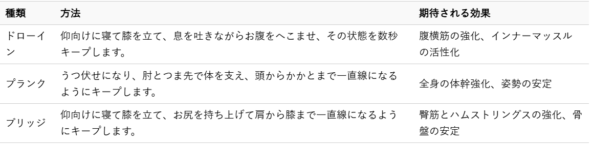 腰痛予防には、腰を安定させる体幹の筋肉を鍛えることが不可欠です。特別な器具がなくてもできる簡単なエクササイズから始めてみましょう。