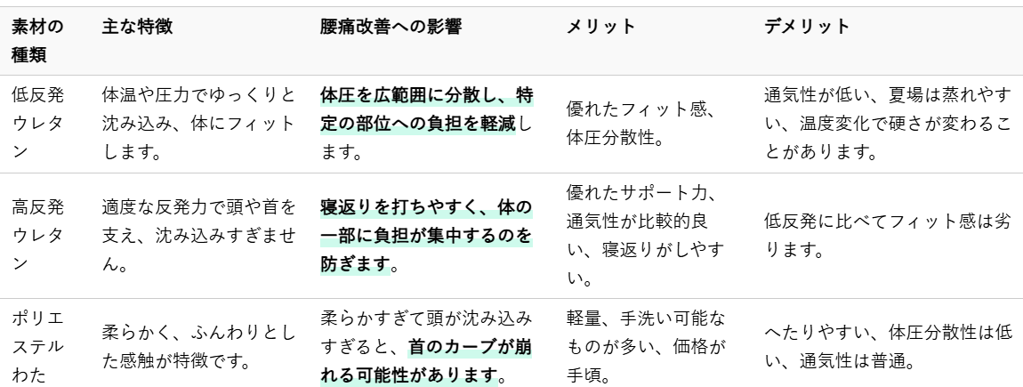 3.2 素材の選び方 低反発、高反発、そば殻など特徴を比較