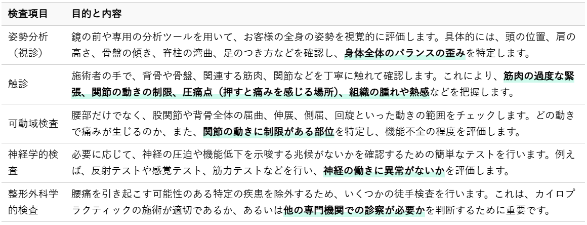 ここでは、カイロプラクティックの施術がどのようなステップで進み、お客様が腰痛改善のためにどのような役割を担うのかについて、詳しく解説いたします。