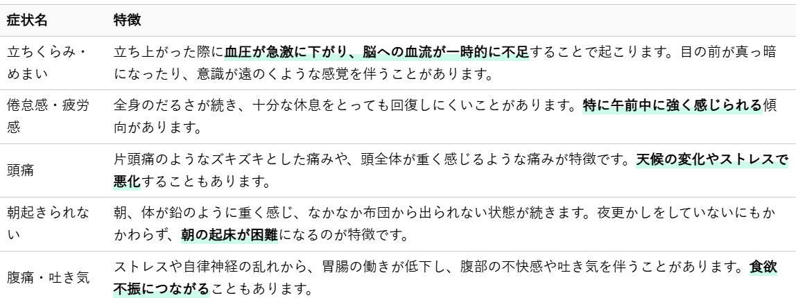 この状態は、単なる「怠け」や「気の持ちよう」で片付けられるものではなく、身体のメカニズムに起因する明確な不調であることをご理解ください。特に成長期の身体には大きな負担となることがあります。